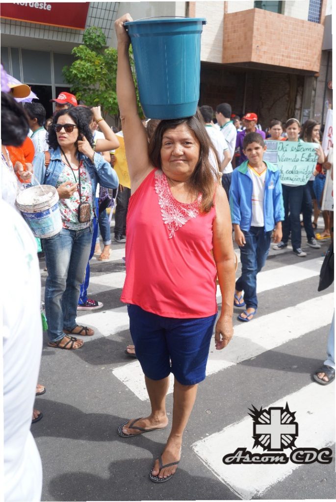 Em Nova Russas foram realizados dois momentos fortes neste mês das águas. O primeiro deles, no dia 15, foi a II Romaria das Águas. À partir das 4h a caminhada organizada pela paróquia Nossa Senhora das Graças levou o povo a meditar, orar e refletir sobre a situação hídrica do município, uma vez que o açude Farias de Sousa, a principal fonte hídrical da cidade, está vazio. No dia 21 pela manhã foi a vez do Sindicato dos/as Trabalhadores/as Rurais puxar um ato público na praça do Mercado Velho, também com a participação da paróquia e da CDC, para refletir com a população a respeito da água, seja através de falas, místicas ou materiais impressos. Um gesto concreto dessa manifestação foi a coleta de assinaturas em abaixo assinado pela limpeza do açude. “Gestos educativos como esses são fundamentais no dia-dia. Quero aqui expressar nosso apoio a essa luta e dizer que em Nova Russas implementamos a construção de centenas de Cisternas de placa e agora executamos o “Cisterna nas Escolas”. Através deste último citado estamos construindo reservatórios de 52 mil litros para garantir o direito à água de qualidade nos colégios da zona rural”, explanou Moizeis Santos, agente Cáritas.