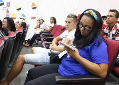 Seja no mar como no açude, os pescadores e as pescadoras têm que enfrentar as ameaças das grandes empresas que estão de olho nas comunidades tradicionais das águas e do campo porque é lá onde a vida pulsa. Esse conflito que desafia o cuidado com o meio ambiente e as tradições das pessoas que vêm cuidando do território, foi o foco da partilha de experiências dos e das participantes que trouxeram as vivências de todos os municípios.